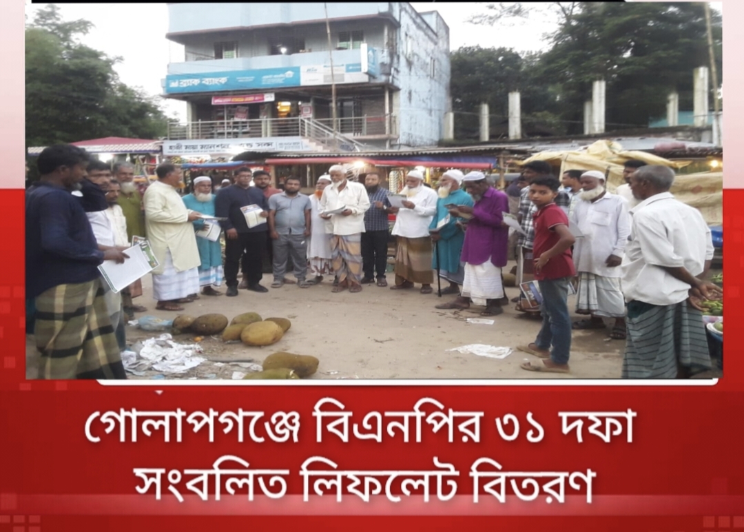 গোলাপগঞ্জে বিএনপির রাষ্টকাঠামো মেরামতের ৩১ দফা সংবলিত লিফলেট বিতরণ করা হয়েছে। রোববার উপজেলার বাঘা ইউনিয়নের বিভিন্ন এলাকায় এই লিফলেট বিতরণ করা হয়। এসময় সিলেট-৬ আসনের সম্ভ্যাব্য সংসদ সদস্য প্রার্থী আ ম অহিদ আহমদের একটি আহবান শিরোনামে একটি লিফলেট বিতরণ করা হয়।