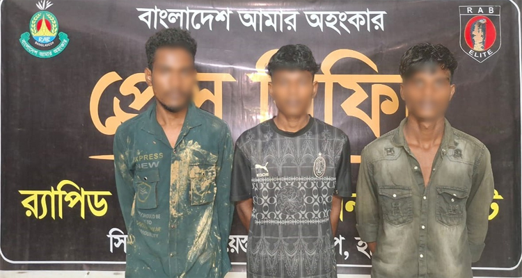 গ্রেফতারকৃতরা হলেন— চুনারুঘাট উপজেলার চাঁনপুর গ্রামের উজ্জল কৃষ্ণ গোয়ালার ছেলে অমিত কৃষ্ণ গোয়ালা (১৯), কমল তাতীর ছেলে সুকন তাতী (১৯), এবং কানন্দ্র রিকিয়াশনের ছেলে রুহিত রিকিয়াশন (১৮)।
