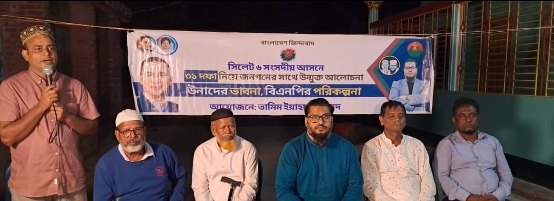 তিনি রোববার রাতে গোলাপগঞ্জের লক্ষ্যনাবন্ধ ইউনিয়নের ৬নং ওয়ার্ডে বিএনপির ভারপ্রাপ্ত চেয়ারম্যান তারেক রহমানের রাষ্ট্র কাঠামো মেরামতের ৩১ দফা নিয় এলাকাবাসীর সাথে আয়োজিত মতবিনিময় সভায় প্রধান অতিথির বক্তব্যে এ কথা বলেন। স্থানীয় ওয়ার্ড বিএনপির ভারপ্রাপ্ত সভাপতি রেদোয়ান আহমদ বাড়ীতে এই সভা অনুষ্টিত হয়। এতে সভাপতিত্ব করেন মুসাব্বির আলী। রেদোয়ান আহমদের পরিচালনায় এতে বক্তব্য রাখেন হাশির আলি, মকতদির আলী, আলাউদ্দিন আহমদ, জয়নাল আহমদ, আসাব উদ্দিন, কয়েস আহমদ, মিনহাজ উদ্দিন ও সাহেদ আহমদ। পবিত্র কোরআন তেলাওয়াত: মাওলানা নুমান আহমদ।
